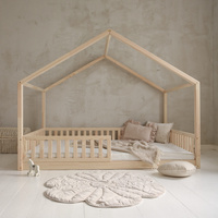 Lit superposé HouseBed Plus avec Barrière Clôture 190x90 Bois naturel avec tiroir (livraison rapide)